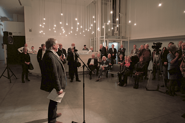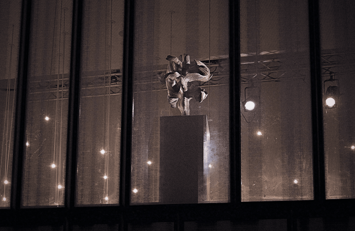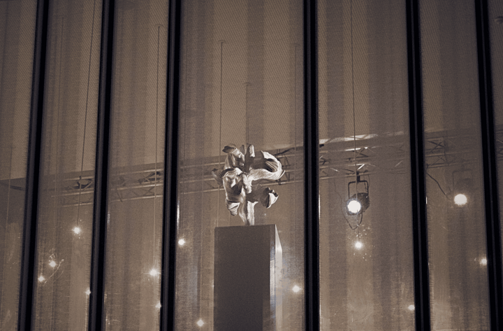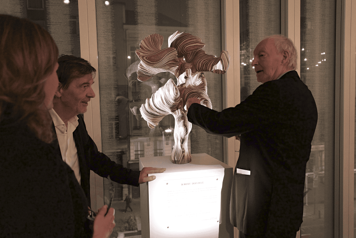 Installation d’une sculpture au Théâtre National de la Communauté française de Belgique à Bruxelles