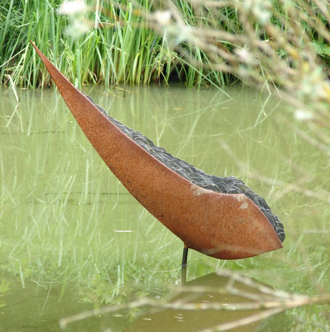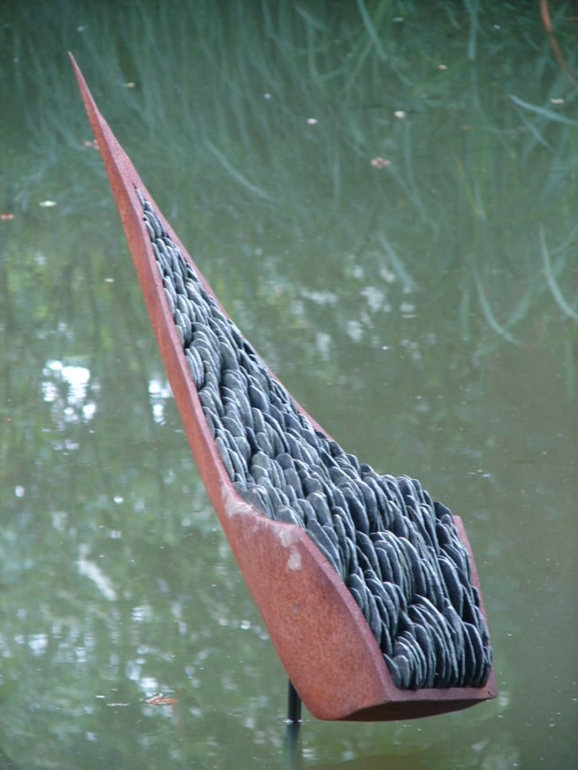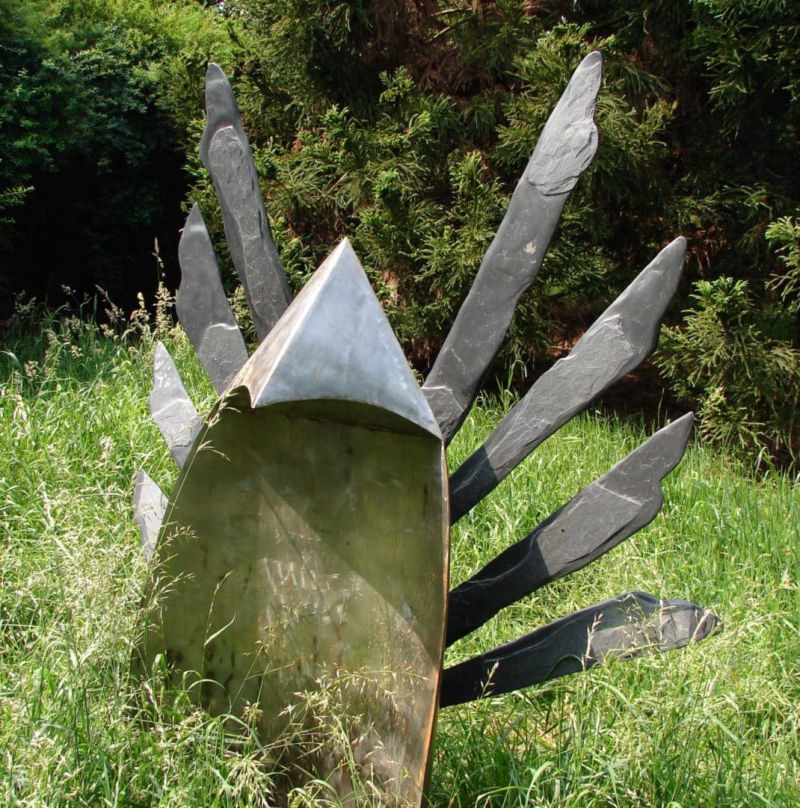 "Corne d'abondance", acier & schiste, 114cm x 67cm x 26cm