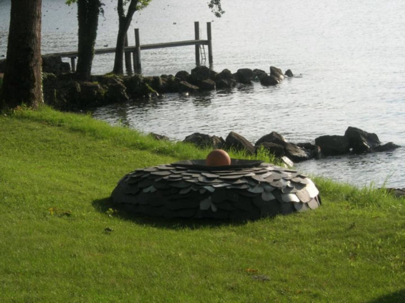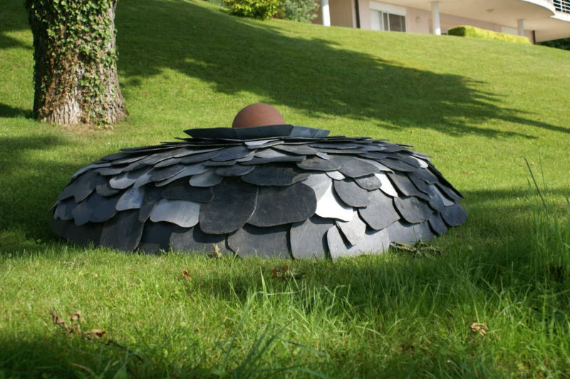 "Mère Terre", acier, schiste, alu, obsidienne, 189cm x 174cm x 60cm