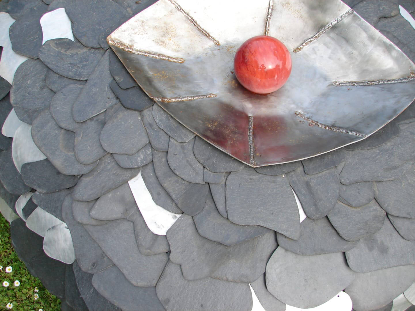 "Corne d'abondance", acier & schiste, 113cm X 68cm X 25,5 cm