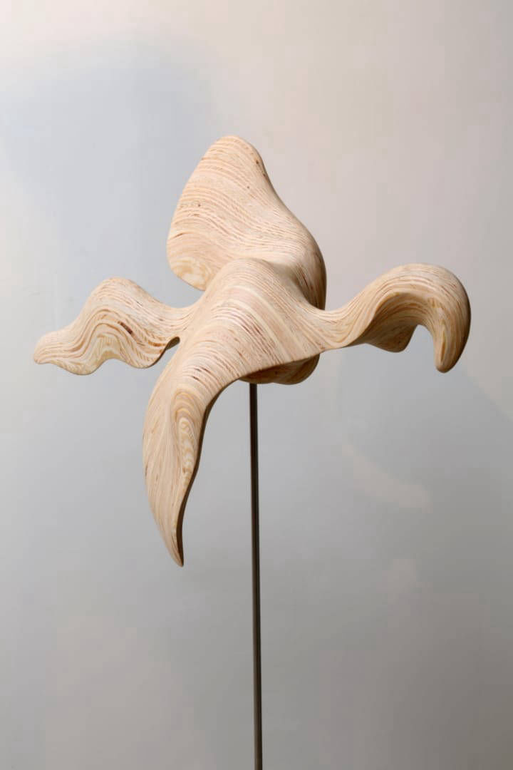Flying, multiplex, 88cm x 65cm x32cm sur socle inox de 126cm