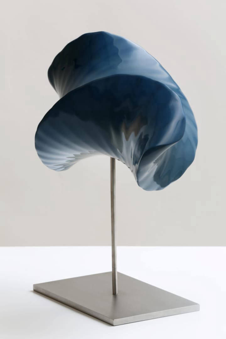 « Infini bleu », mdf teinté, 34cm x 36cm x 25cm