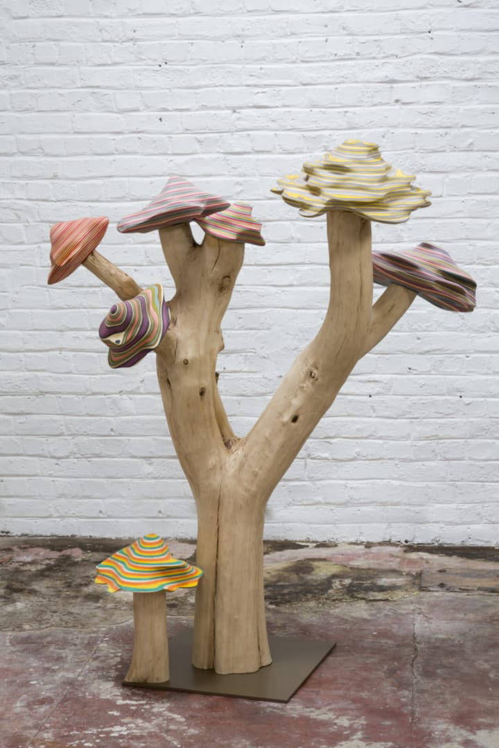 « Arbre aux champignons », charme & obéché, 120cm x 158cm x 107cm