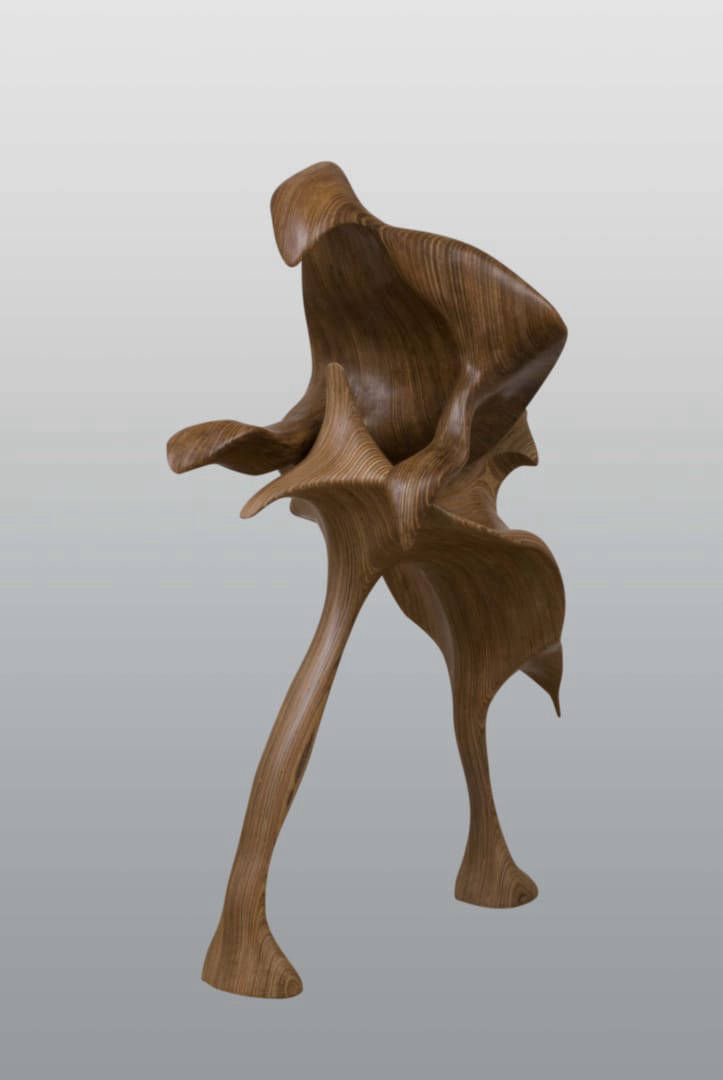 Arbrequidanse : « Arbre qui danse », obéché teinté, 17cm x 18cm x 84cm