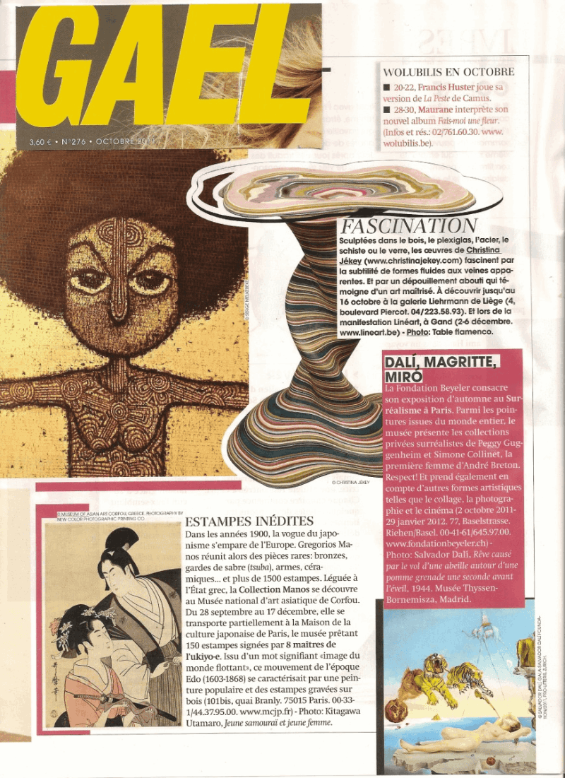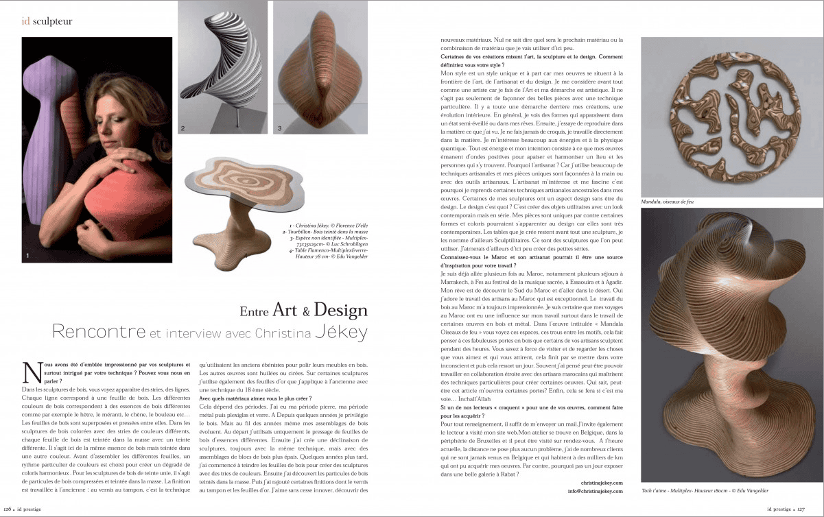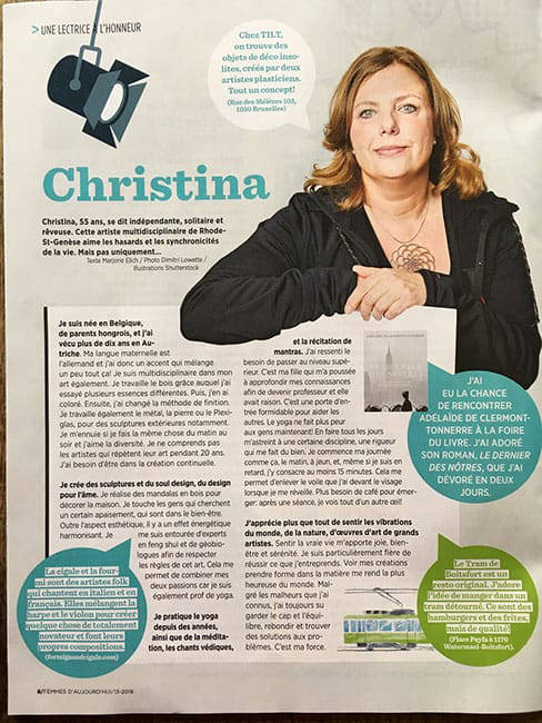 Quant à son propre chemin, celui de l'art, il n'arrête pas d'évoluer. Depuis peu Christina crée également ce qu'elle appelle ses "Sculptulitaires", une sculpture toujours unique mais à fonctionnalité, à partir du bois, la matière qu'elle connait le mieux. Un exemple en est la table de bois colorée baptisée « flamenco » dont le pied unique de évoque la robe et les courbes d'une danseuse espagnole. Elle n'a pas fini de nous étonner !
