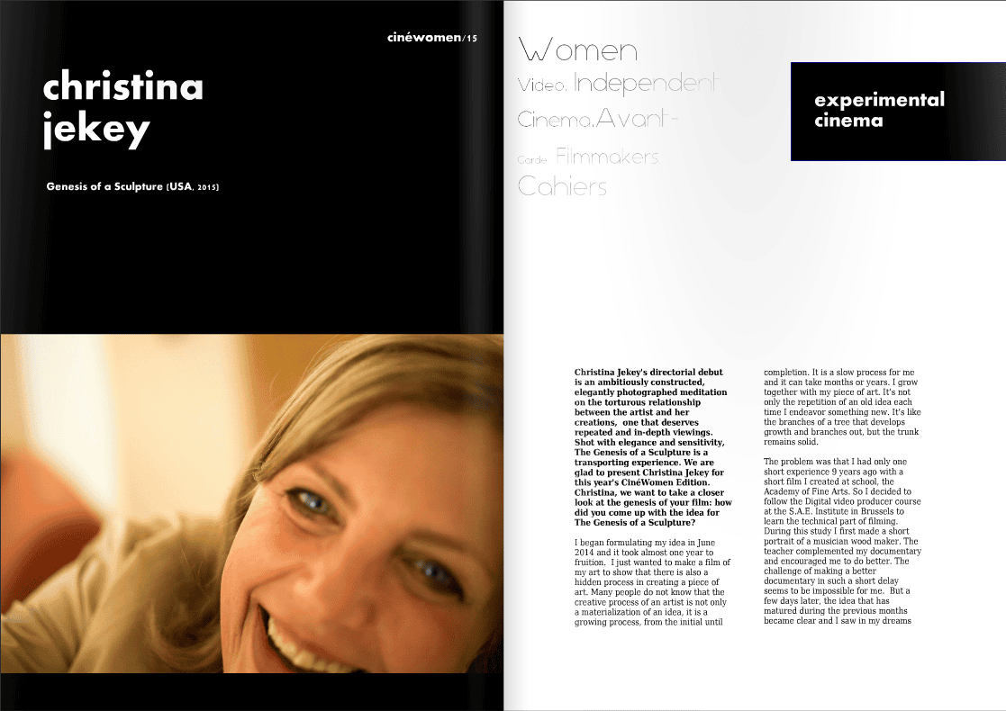D'origine hongroise, née à Bruxelles en 1962, Christina Jekey travaille à la Commission Européenne pendant des années avant de décider de s'adonner à plein temps à sa passion, la création. « Je suivais depuis longtemps des cours du soir (en dessin, sculpture, gravure, céramique art thérapie, ...). Un professeur auquel je demandais conseil me dit que pour développer son sens artistique il fallait « se baigner dans l'art, être dedans du matin au soir ». Après quelques mois de réflexion j'ai décidé de tenter ma chance et d'étudier à l'Académie Royale des Beaux-Arts de Bruxelles, juste un an, pour voir... c'était en 2002 ».