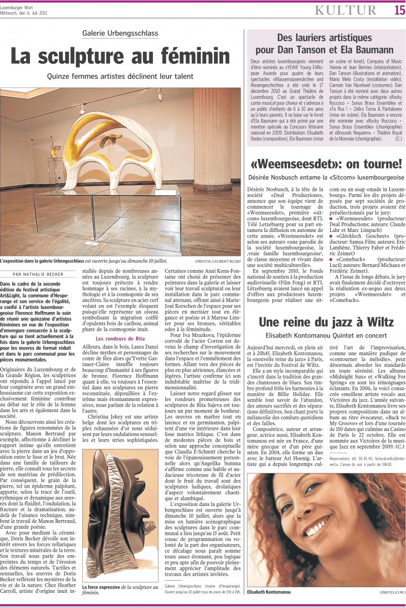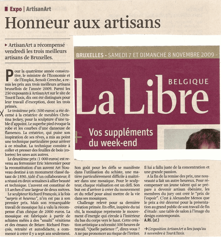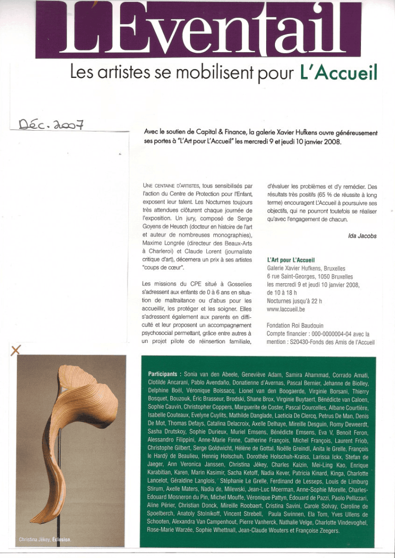 Et sa magie opère ! « Créées à partir d'un matériau banal, les œuvres de C.J. évoquent le bois précieux »... « Une œuvre méditative qui interroge dans la foulée les lois de l'univers, et qui, dans la lignée de certains grands sculpteurs contemporains, ose aussi, simplement, affirmer la beauté » (Jo Dustin, Paris Match, mai 2007). « Ces formes pleines, fluides, polies, au veines apparentes, semblent des joyaux sortis de terre, encore parfumés d'humus » ... « Ces sculptures posées au sol ou suspendues sur un socle affirment une beauté rare dont on ne se lasse pas de découvrir les spirales et les volutes » (V.C., Ideat, octobre 2007)