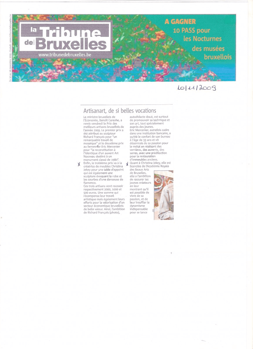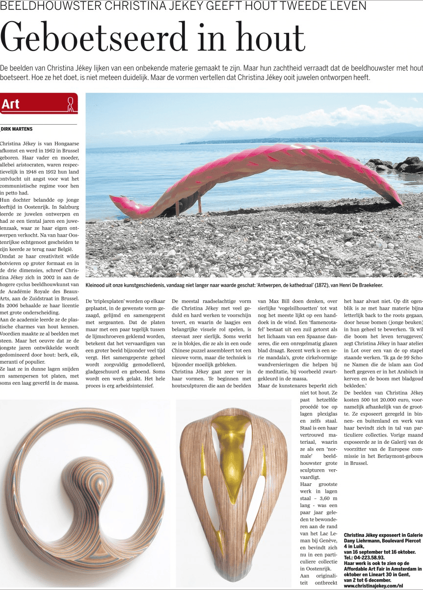 Christina Jekey, Artiste Plasticienne, navigue entre sculpture, design et artisanat. Dans son atelier de Beersel naissent des joyaux, tout en stries et ondulations. Chaque pièce est unique.